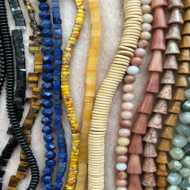 We work with materials that speak to the senses - soft leather, woven cords, polished metal, ceramic accents, and natural stones.