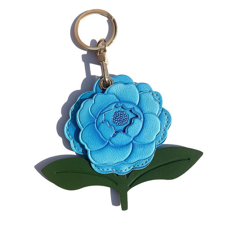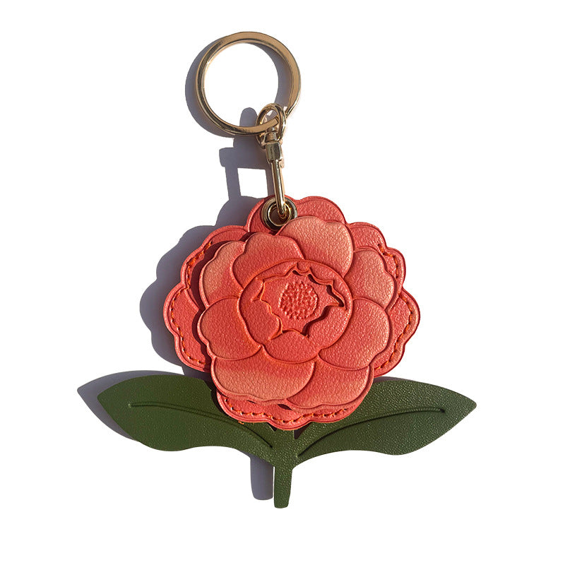 Handmade Leather Flower Keychain –Floral Charm in 4 Colors