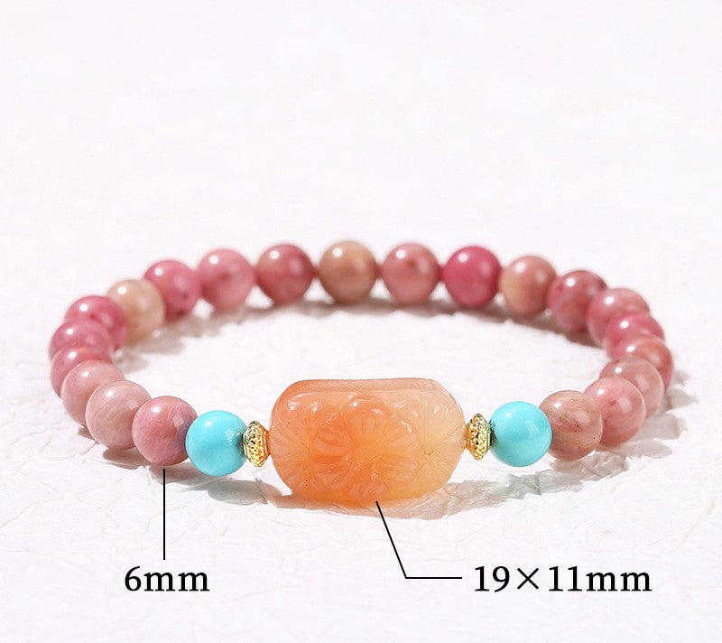 Healing Gemstone Bracelet – 6mm Natural Rhodochrosite & Carved Agate