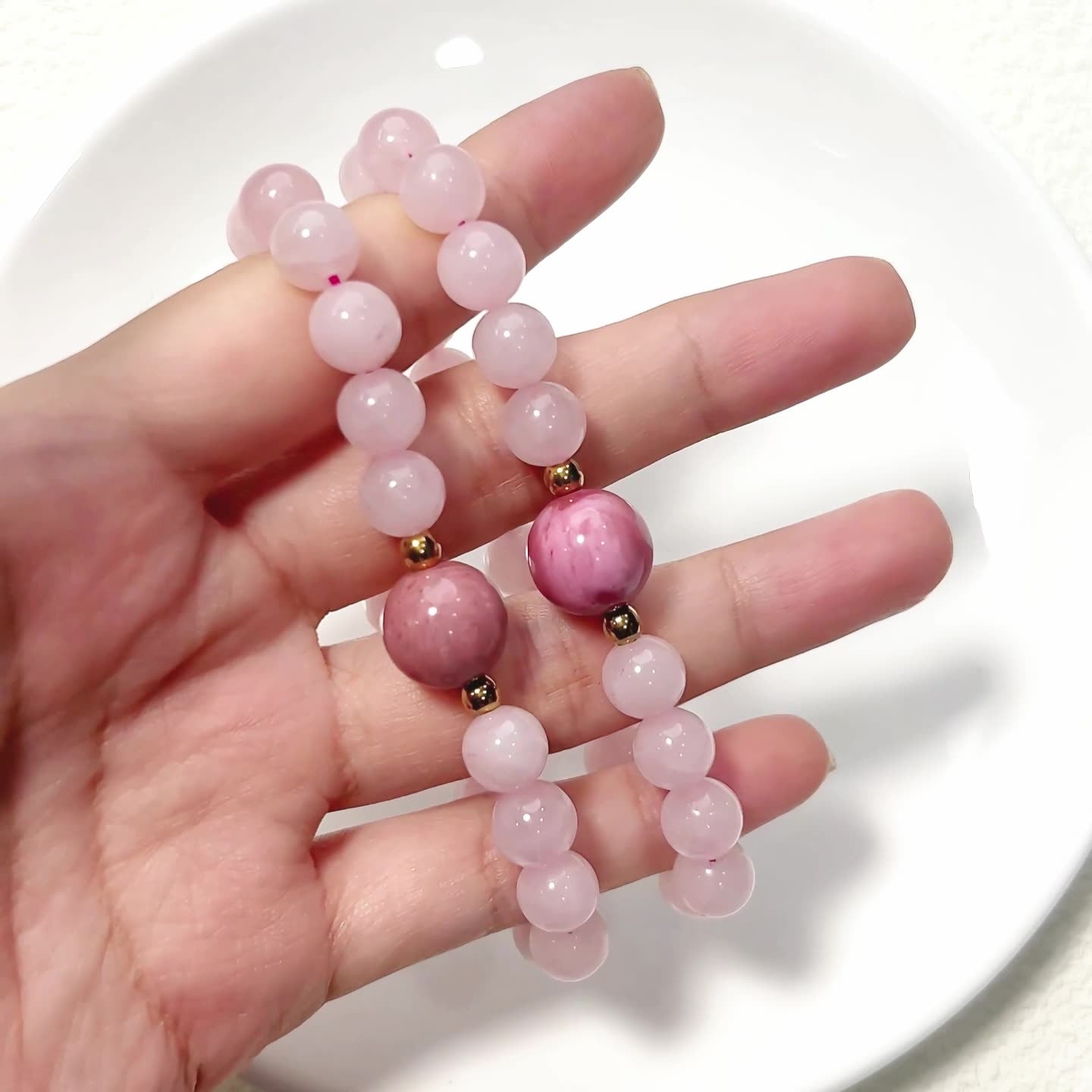 Healing Gemstone Bracelet-Natural Rose Quartz & Rhodochrosite