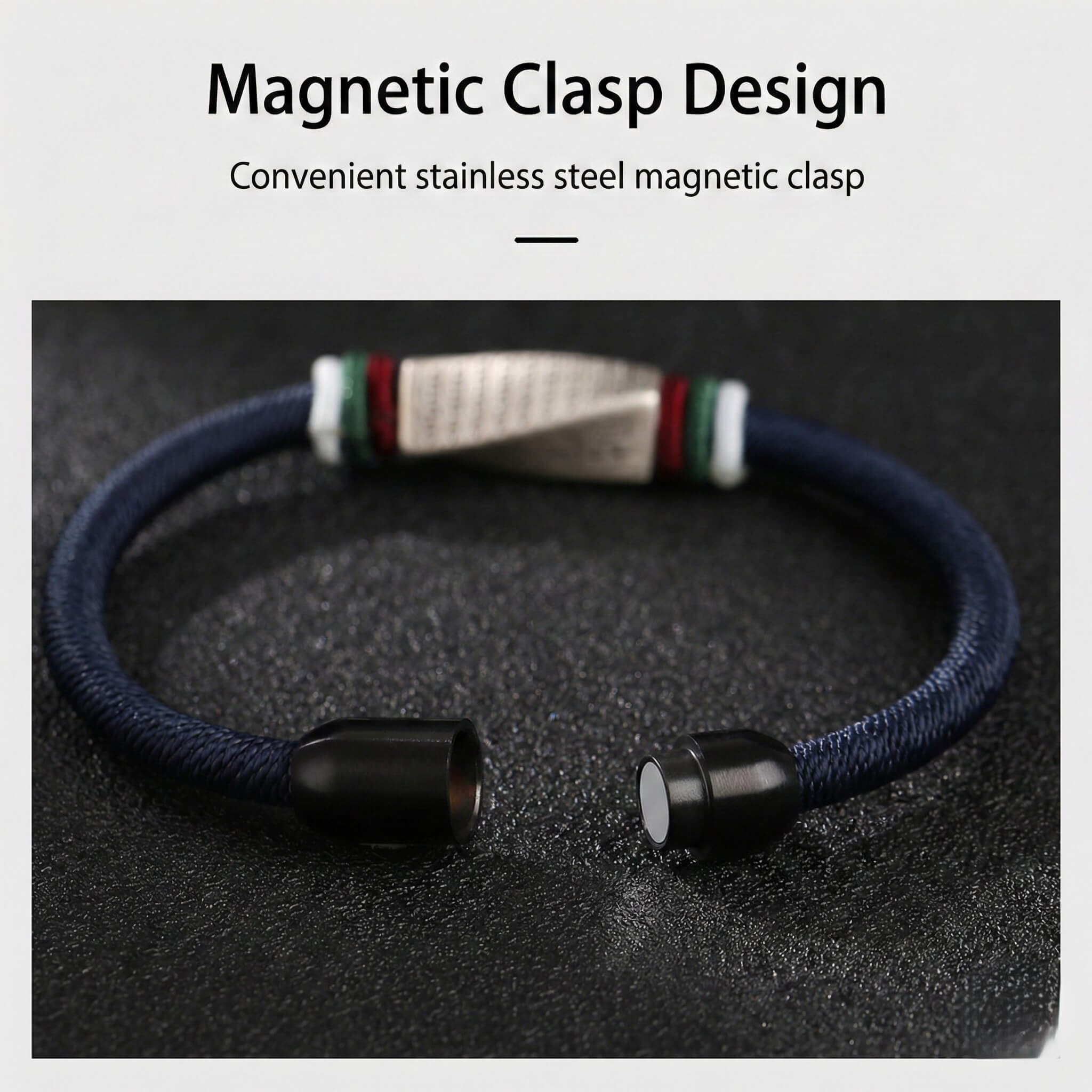 Quick-Release Magnetic Clasp: Equipped with a stainless steel magnetic buckle. It’s secure, durable, and allows for effortless one-handed wear—perfect for the busy modern man.